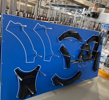 We were tasked with the job of producing a solution for Chivas Brothers to safely store their production line components in an easy eccessed position as well as knowing what's missing at a glance.